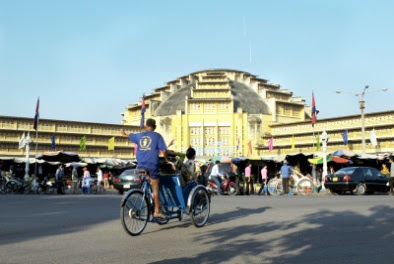 This distinctive building is a city landmark - a unique art deco version of a traditional market. Four arms of the market converge in a soaring dome at the hub, perhaps reflecting the four arms of the chaktomuk (the convergence of the Mekong River.) Prior to 1935 the market area was a swamp/lake known as Beng Decho that received the runoff during the rainy season. The lake was drained and the market constructed in 1935-37, during the French colonial period, and originally dubbed the ‘Grand Market.’ Phsar Thmey is currently undergoing renovation but most of the project is complete. The central section of the main market building displays an amazing collection of gems and jewelry. The souvenir vendors are all back along the central entrance walk - offering curios, statuary, handicrafts, silks, t-shirts, postcards, etc.